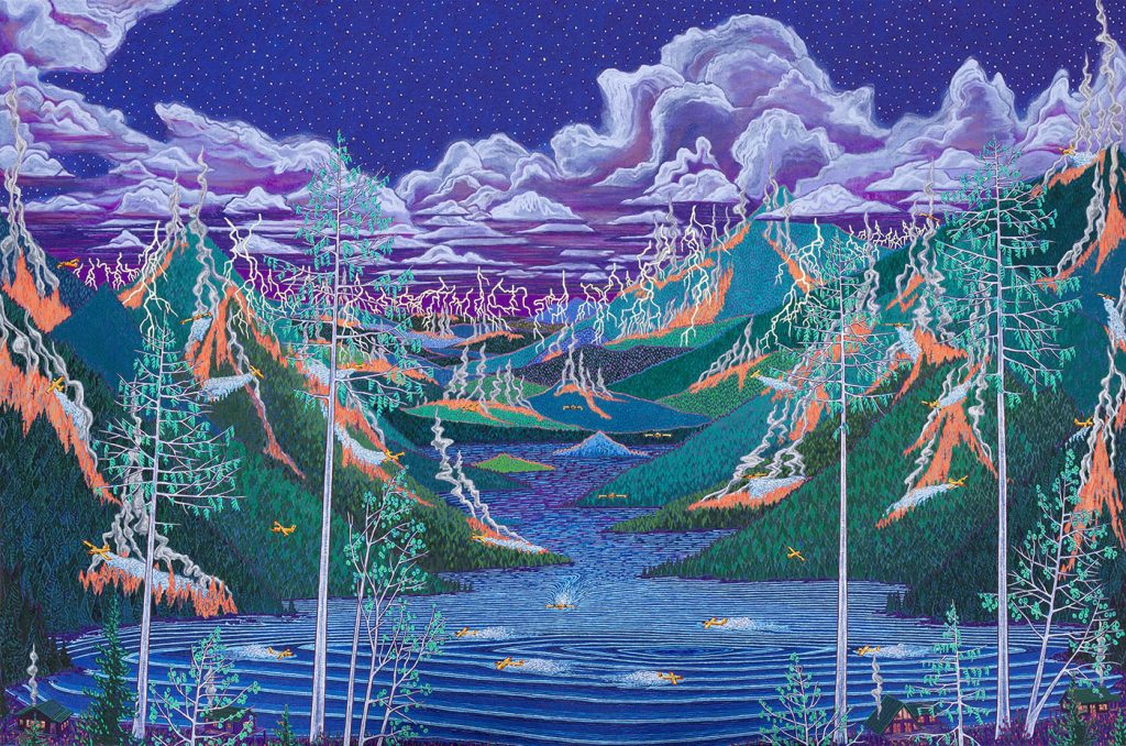 Firefly, 2023, 48×60 inches, oil on linenThe Dark Won’t Hide It, 2024, 36×54 inches, oil on linenA River From The Sky, 2023, 72×48 inches, oil on linenSalmonberries, 2024, 48×60 inches, oil on linenGold River, 2024, 36×24 inches, oil on linenThunder, 2023, 48×72 inches, oil and cedar ashes on linenRainbowabra, 2024, 32×48 inches, oil on linenHummingbird, 2023, 60×36 inches, oil on linenWe’re Never Alone, 2024, 48×36 inches, oil on linenSpring Studio, 2024, 24×36 inches, oil on linenTrillium River, 2024, 30×24 inches, oil on linen