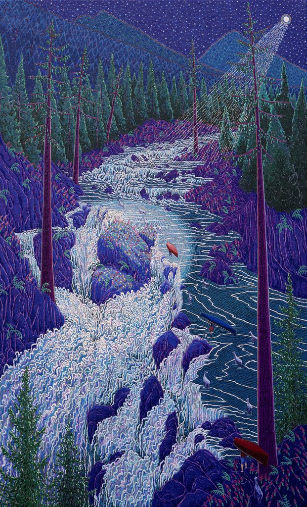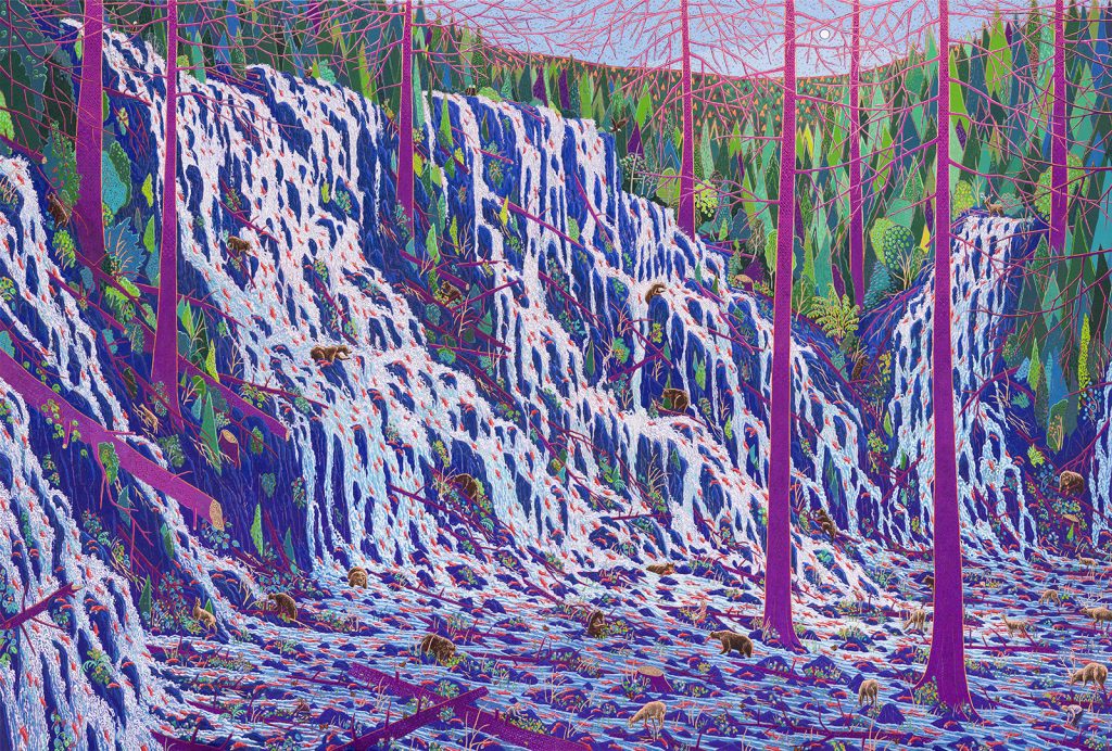 Salvage, 2024, 74×48 inches, oil, sand and ashes from the Coldwater River salvage logging site on linenMore Fireweed (Deer), 2025, 48×66 inches, oil and ashes from the Nemo Creek wildfire on linenMoonweed, 2025, 60×36 inches, oil on linenWe’re All In This Together, 2024-2025, 66×96 inches (diptych), oil on linenSomething More To Burn, 2025, 36×48 inches, oil and ashes from the Lee Creek wildfire on linenRiverabra (Upstream), 2025, 55×36 inches, oil and ashes on linenRiverabra (Downstream), 2025, 55×36 inches, oil on linenMore Fireweed (Salmon), 2025, 36×60 inches, oil and ashes from the Adams River wildfire on linenA Stellar’s Jay, 36×24 inches, oil, sand and reclaimed iron oxide on linenDon’t Worry, I’m Still Here To Help, 2025, 24×36 inches, oil and ancient maple leaves on linenRainbow Trout, 2025, 36×24 inches, oil on linen